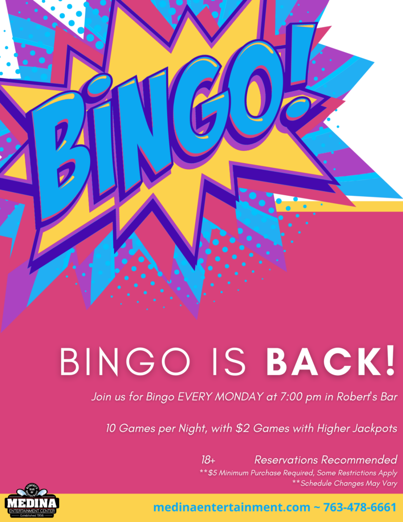 Join us EVERY Monday in Robert’s Bar for BINGO!